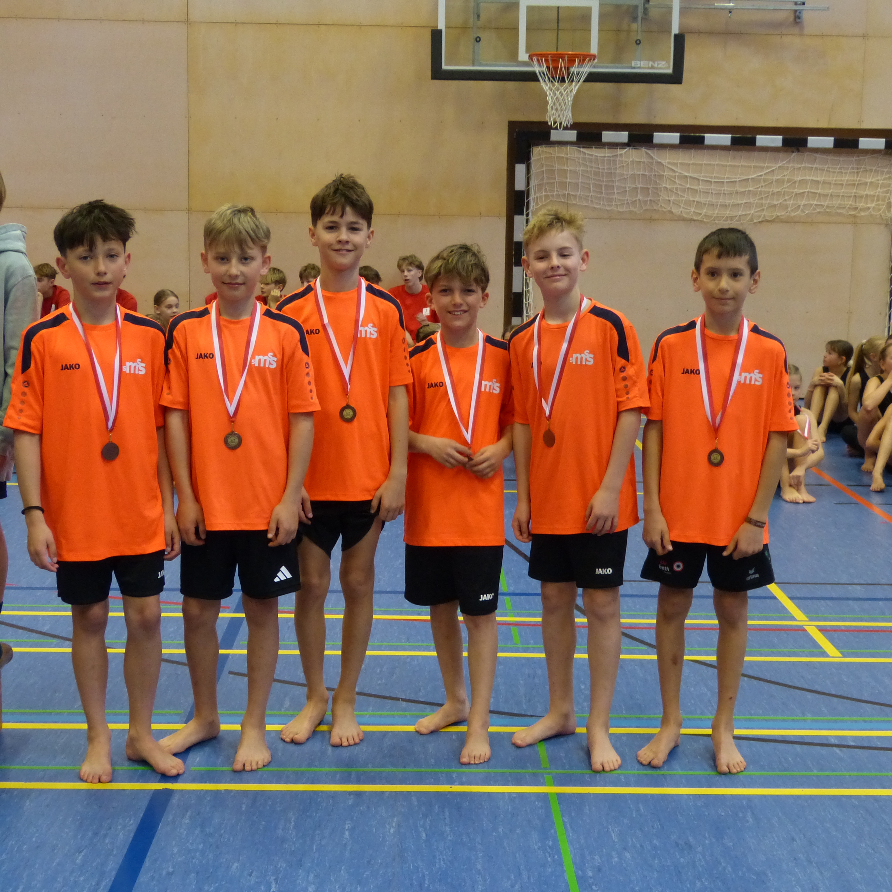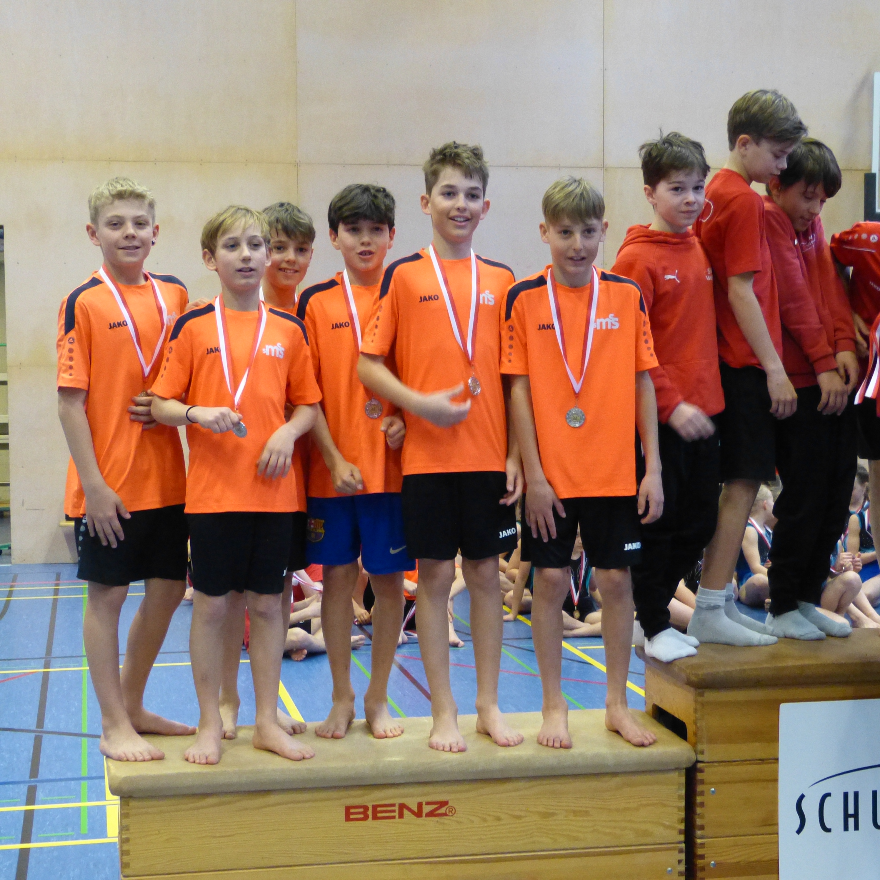 Bei der heurigen Turn10-Landesmeisterschaft der Sportmittelschulen im März 2026 konnten die Turner der 4c-Klasse (Jakob Ernst, Claudio Kriss, Mika Lins, André Obmann, Linus Pichler, Jakob Wörgötter) ihren 2. Platz vom letzten Jahr halten und die SMS Hohenems wieder hinter sich lassen. Gegen den Dominator im Geräteturnen der letzten Jahre, die SMS Wolfurt, war kein Land in Sicht. Trotzdem war die Freude über den Erfolg groß. Die SMS Satteins war traditionellerweise wieder mit allen Sportklassen am Start und boten ansprechende, turnerische Leistungen. Erwähnenswert bei den Knaben ist der ebenso erfreuliche 2. Platz der 2c-Klasse. Die 1c und 3c landeten jeweils auf dem beachtlichen 3. Platz. Die Konkurrenz bei den Mädchen ist mit Wolfurt, Hohenems und Nüziders äußerst stark, hier platzierten sich die Mädchenteams jeweils auf dem etwas undankbarem 4. Platz. Ein großes Danke an dieser Stelle den Sportlehrer:innen der Sportklassen (Leonie Hartl, Dagmar Mark, Stefan Marte, Ulrich Kriechbaum, Sarah Sperger, Matthias Trummer), die in den letzten Monaten mit großem Engagement die Schüler und Schülerinnen auf den Wettkampf vorbereiteten.
