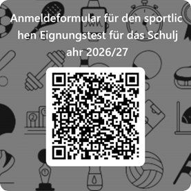 1.) Anmeldung zum sportlichen Eignungstest (bis spätestens 23. Dezember 2025) mit folgendem Link: Anmeldung für den sportlichen Eignungstest Schuljahr 2026/27